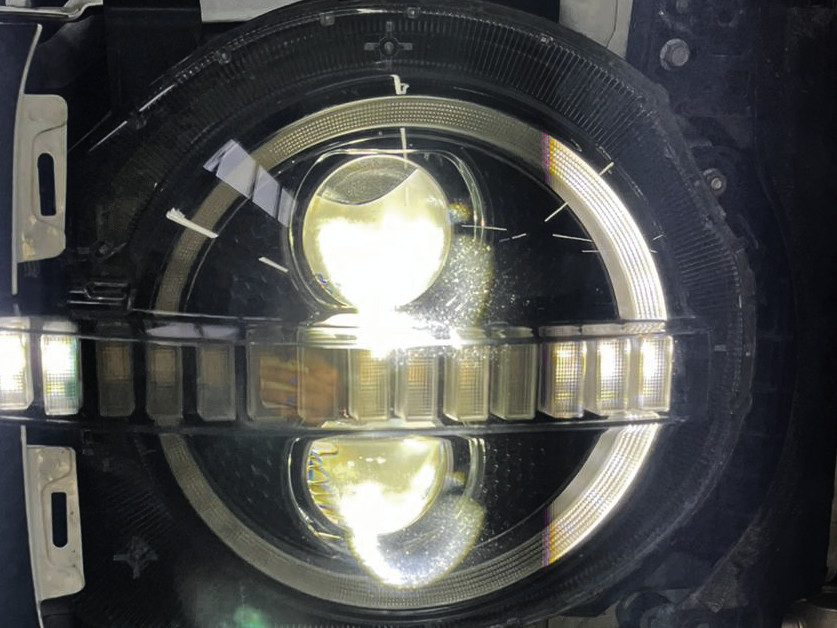 Вместо штатных линз мы установили в каждую фару по два круглых 3-дюймовых линзовых модуля.