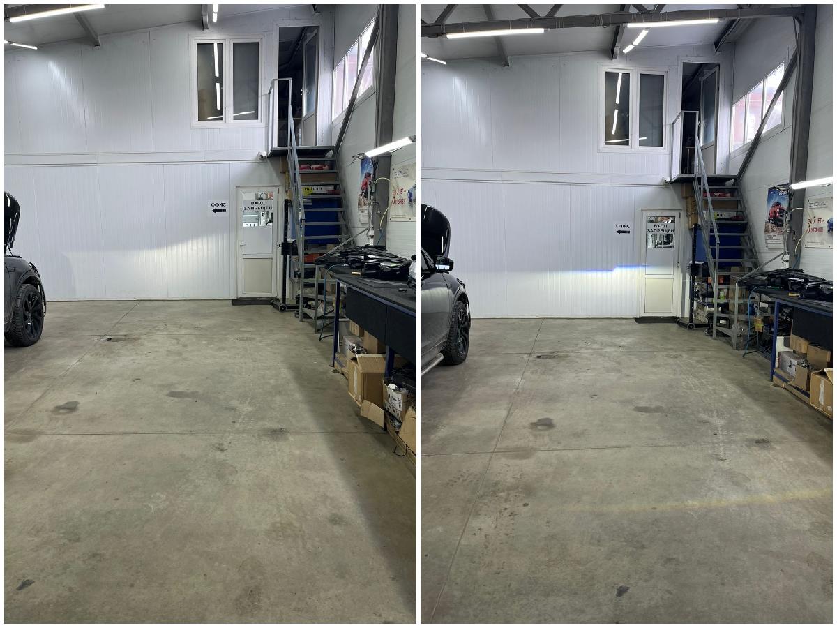 Сразу же после перестройки одной из фар стала наглядно видна разница в качестве света между тем, как было изначально и что у нас получилось.