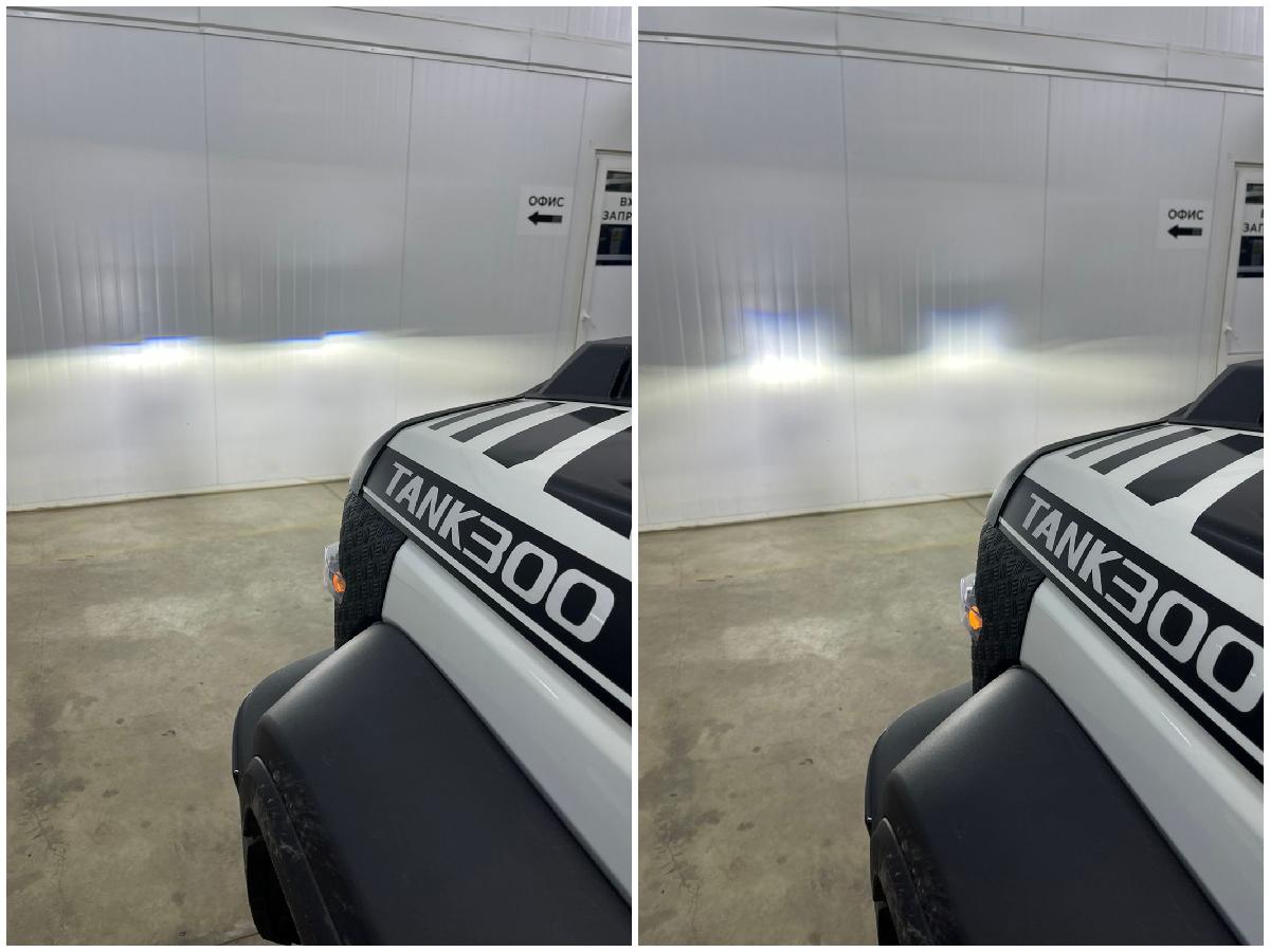 Этот Tank 300 был произведен в 2023 году, и, в полном соответствии с нынешними технологическими трендами, его головное освещение начало приходить в упадок.