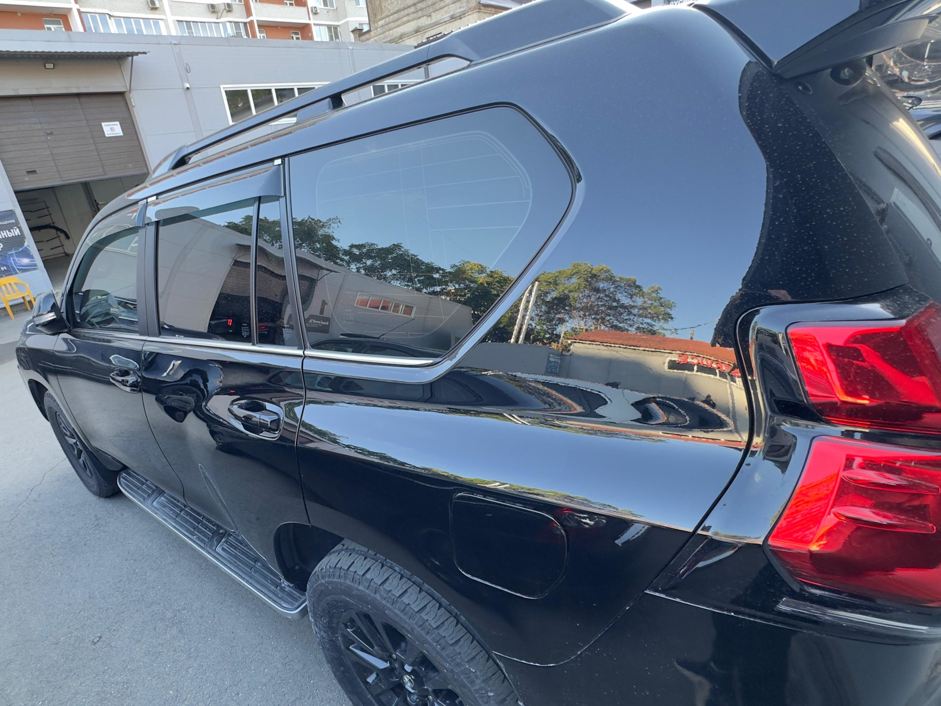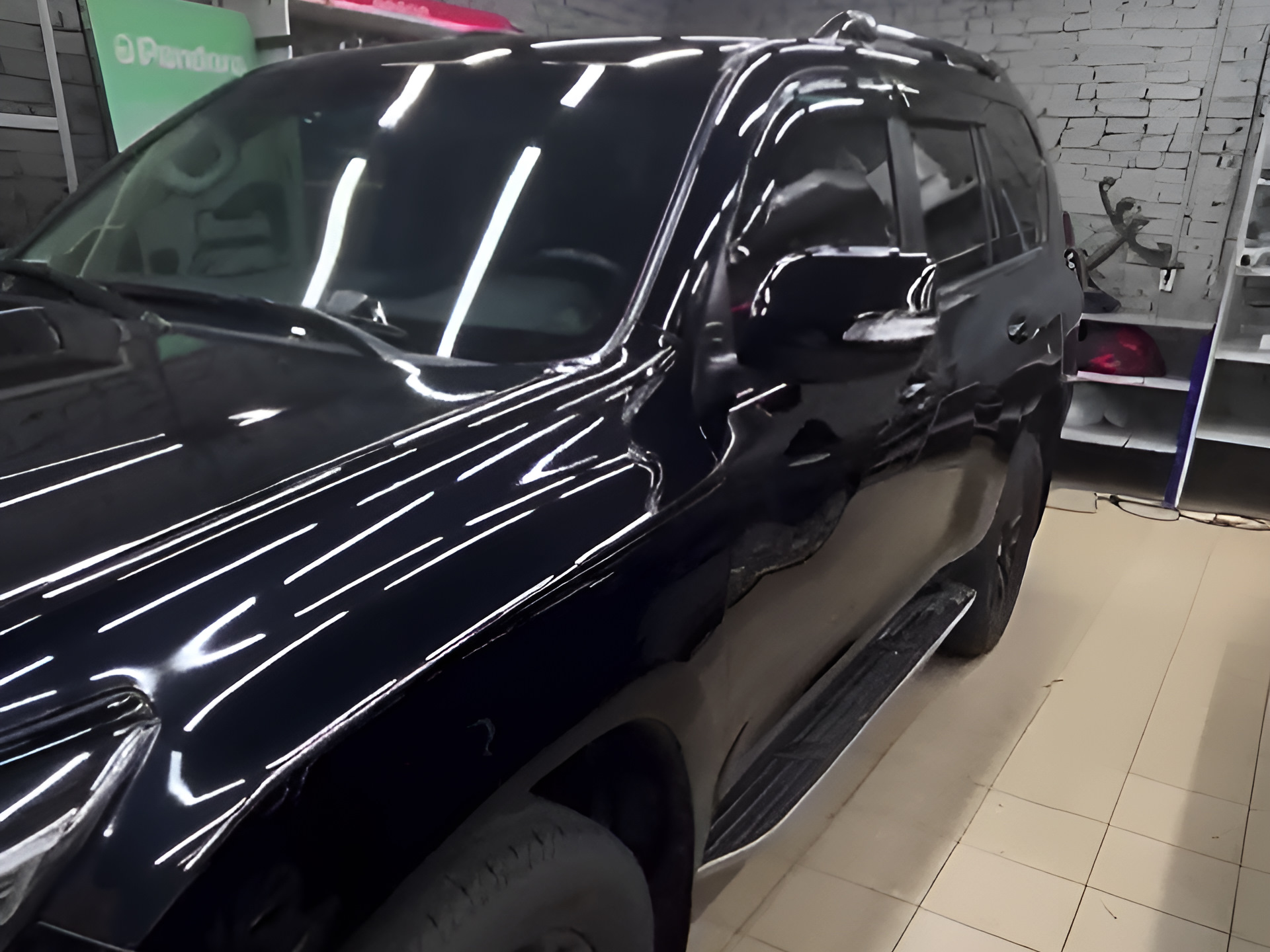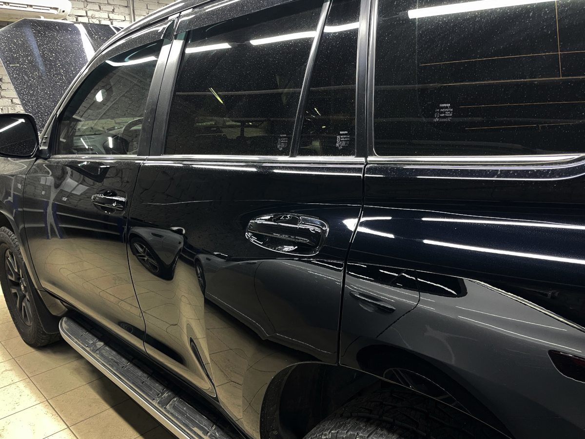 В наш автоцентр приехал этот красивый Land Criuser Prado 150 с вот такой печалью: глубокая царапина через левый борт.
