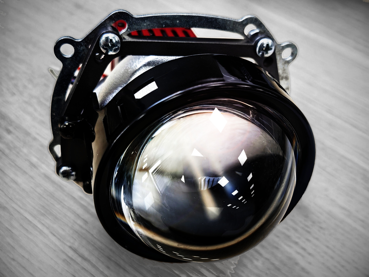Линзовый модуль Zorkiy X70 Laser Effect, который мы устанавливаем в оригинальную фару, дает гораздо более яркий свет, но внешне немного отличается от заводской линзы.